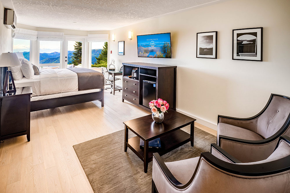 Tuscan inspired with contemporary finishes, our Classic View Rooms invite the outdoors in with wide windows and sweeping views of the Saanich Inlet and Olympic Mountains. Slip into the rain shower or sink into plush seating. With pillow-top queen mattresses in every room, this is your space to rest and relax.